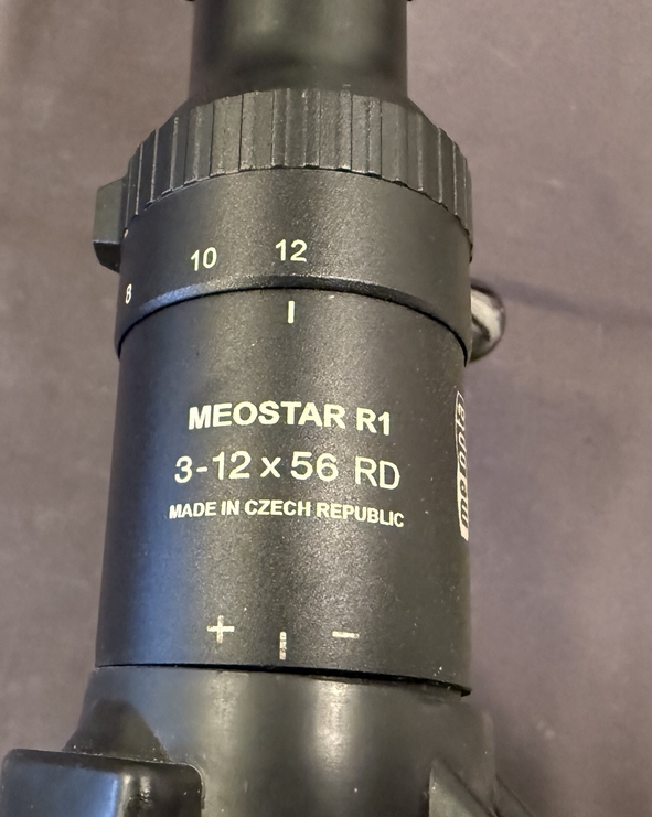 Zielfernrohr Meopta Meostar R1 3-12x56, Leuchtabsehen 4, montiert auf einer EAW-Schwenkmontage.