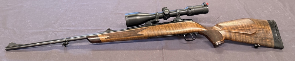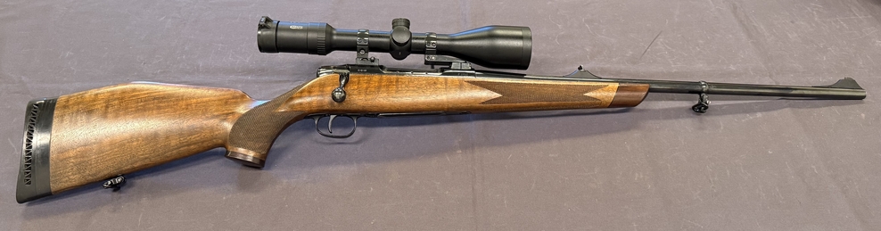 Zustand: Der Schaft zeigt leichte Gebrauchsspuren. Die Brünierung ist am Lauf teilweise abgerieben, ist aber sonst in gutem Zustand. Das Zielfernrohr ist in sehr gutem Zustand. Sehr gute Schussleistung.