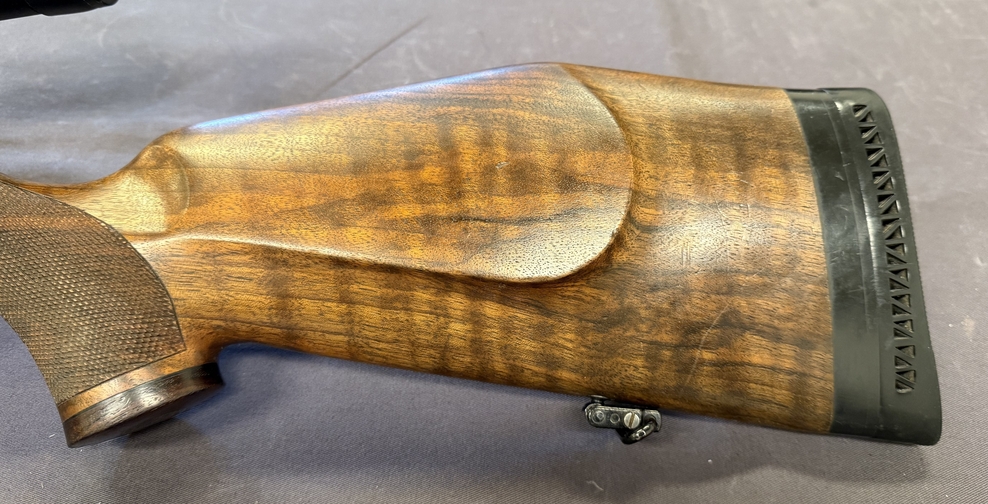 Sehr schön gemaserter Nussbaumschaft.