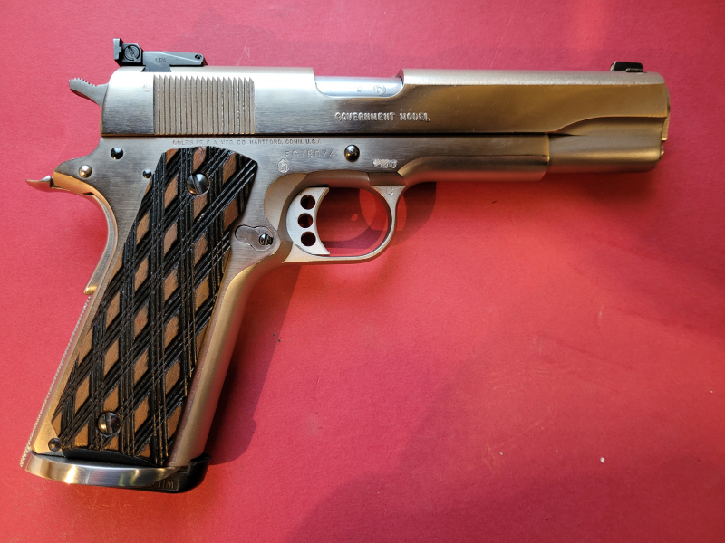 Die angebotene Pistole stammt aus dem Jahr 1988. Sie wurde nur selten geschossen und befindet sich in einem nahezu neuwertigen Zustand, ohne äußerlich sichtbare Gebrauchsspuren. Es handelt sich hierbei um eine von der Firma Wilson als Matchwaffe überarbeitete Pistole. Der Lauf ist spiegelblank. Verschluss und Lauf sitzen absolut spielfrei auf dem Griffstück. Der Abzug löst trocken aus und hat einen einstellbaren Triggerstop. Des weiteren ist die Pistole mit einem voll verstellbaren Visier von LPA, einer langen Federführungsstange, sowie einem Magazintrichter versehen. Sie wird einschließlich Reservemagazin im Originalkarton geliefert. Für diese Pistole ist noch ein Wechselsystem im Kaliber 10 mm Auto von Para Ordnance vorhanden. Bei Interesse einfach anfragen. Hinweis: Die Pistole wird von mir im Auftrag eines Schützenkameraden versteigert. Die weitere Abwicklung des Verkaufs mit dem Erwerber, einschließlich der Überprüfung von dessen Erwerbsberechtigung, Empfang der Bezahlung und Versand der Pistole werden aus Gründen der Vereinfachung ebenfalls von mir übernommen. Der Versand erfolgt gemäß den gesetzlichen Bestimmungen per Overnight mit Idenditätsprüfung.