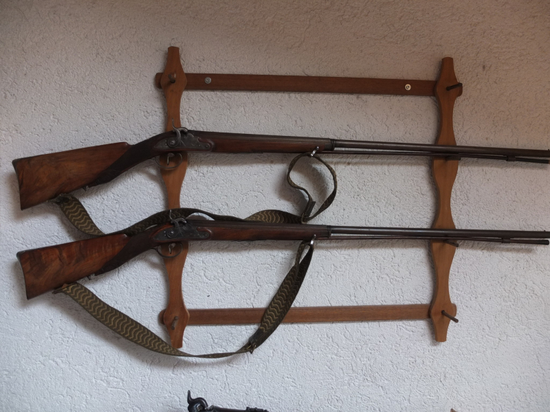 Zwei fast identische Flinten ca. 133cm lang ca. 15mm Rohrdurchmesser.