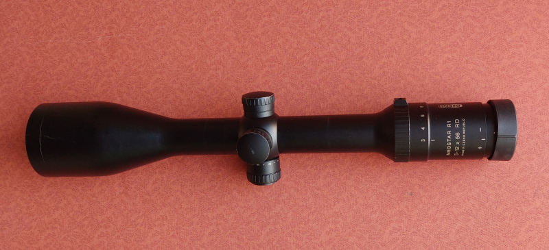 Ein Zielfernrohr von Hersteller "Meopta", Modell: Meostar R1 / 3-12x56 mit Leuchtabsehen 4 / mit oberflächigen Spuren vom jagdlichen Führen / Mittelrohr-Durchmesser ist 30mm / Obektiv-Durchmesser 62mm / die Absehenverstellung arbeitet gut (1 Klick = 1cm)