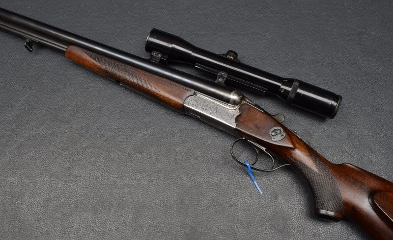 montiert mit Zielfernrohr Hubertus Variabel 1 3/4-6x40 Absehen. 1, mittels SEM Montage. Nußbaumschaft mit mit Deutscher Backe, Riemenbügeln und Gummischaftkappe.