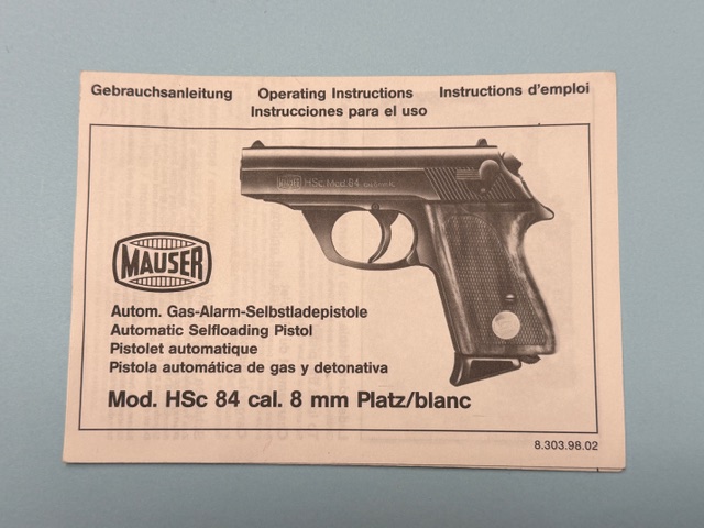 Verkaufe eine originale Bedienungsanleitung für die Schreckschusspistole Mauser HSc 84 im Kaliber 8 mm Knall/Gas. Verkauf wie abgebildet. Ich verkaufe die hier angebotene Ware als Privatperson und schließe die Sachmängelhaftung grundsätzlich aus. EGun übernehme ich, der Käufer trägt die Versandkosten. Beachtet auch meine anderen Auktionen (Porto sparen).