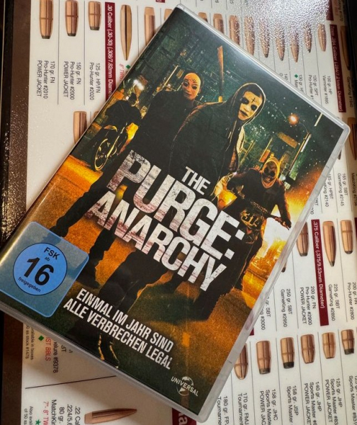 Zum Verkauf steht die DVD „The Purge: Anarchy“, der zweite Teil der bekannten „Purge“-Filmreihe.