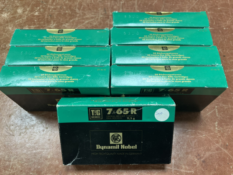 Zum Verkauf stehen acht Pakete RWS TIG Munition im Kaliber 7x65R 11,5g.