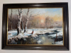 Das Gemälde ist professionell in einem eleganten dunklen Rahmen mit Goldkante gefasst. Die Malerei besticht durch ihre realistische Darstellung und die atmosphärische Lichtstimmung.