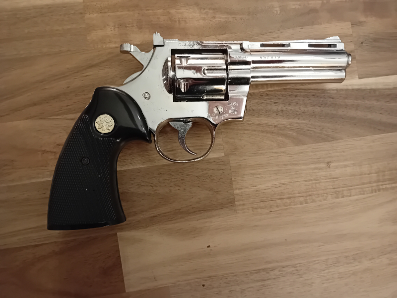 Biete den hier abgebildeten Schrechschussrevolver von Umarex Mod. Python in 9 mm Knall, im Stainlessstiel neuwertiger Zustand, inklusive Holster und Abschussbecher mit leichten Gebrauchsspuren. Abzug Double und Single Aktion. Bei Fragen einfach per Mail anschreiben. Versandkosten in EU bitte vor Gebot anfragen. Privatverkauf, daher keine Garantie und Rücknahme wie üblich. Altersnachweis erforderlich! PTB 282-3
