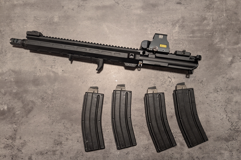 Verkaufe hier mein 22 l.r. Wechselsystem von Brownells mit 16,5 Zoll Lauf für alle AR15 mit Mil-Spec Lower. Also auch H&K MR 223, Haenel CR 223 etc. Ich selbst habe es mit meiner MR 223 genutzt, welche aber nun verkauft wird. Schussbelastung ca 500. Neupreis 850€. Sportlich zugelassen.