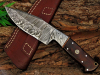 Damast Jagdmesser schöne Klingenmaserung Damast Stahl mit Lederhülle MAQ2010