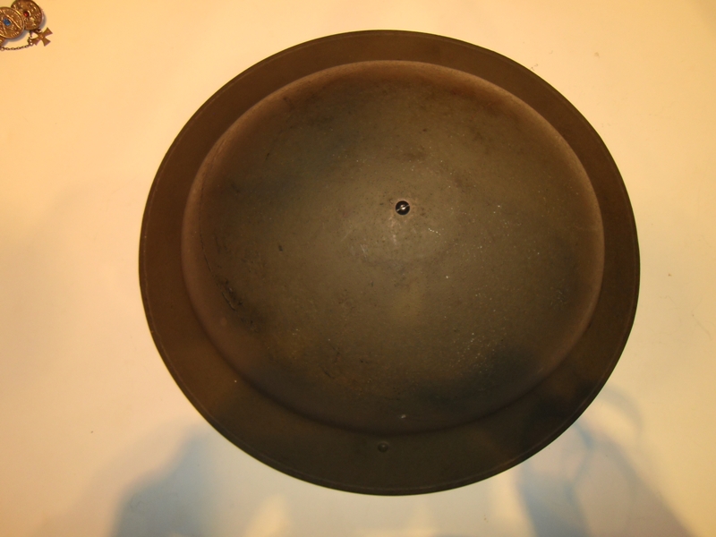 Sammlerstück: Der Mk I „Brodie“,/ Tellerhelm, von den britischen Frontsoldaten als Tin Hat (Blechhut) bezeichnet. Helmgewicht von 750 Gramm. Mit benutztem verschnürten Innenfutter aus braunem Leder (nicht geöffnet oder gereinigt). Mit leinenähnlichem Kinnriemen. Im Inneren einen Stempel mit 55. Einige kleinere Kratzer und schwarze Verfärbungen. Herstellungsjahr unbekannt. Guter gebrauchter Zustand. Maße H 12 cm x B 29 cm x T 31cm.