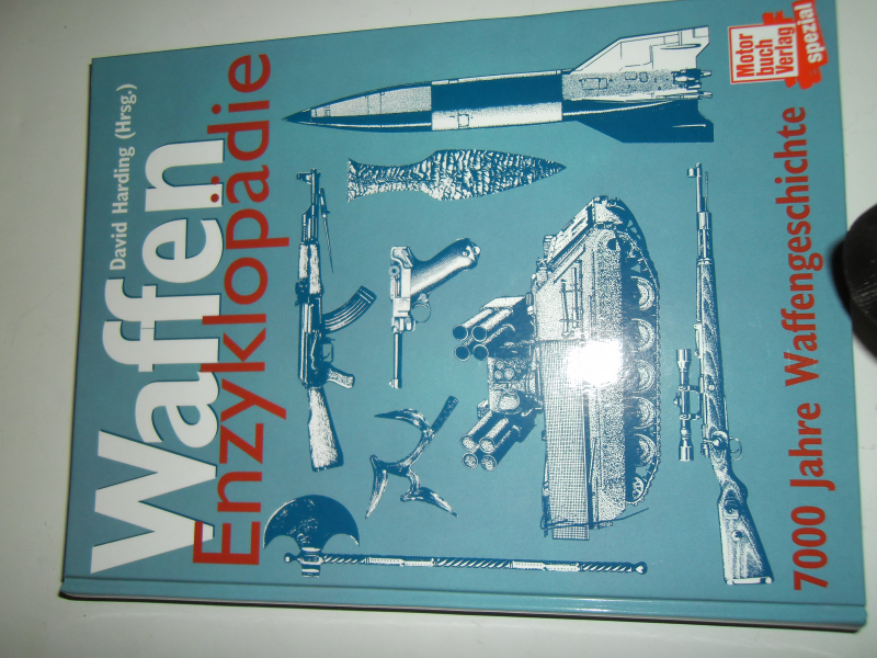Waffen Enzyklopädie von David Harding (Hrsg.) 7000 Jahre Waffengeschichte. Vom Faustkeil bis zum Cruise Missile. Ins Deutsche übertragen von Dipl –Ing. Herbert Jäger. 1. Auflage 2000 vom Motorbuchverlag Spezial, Stuttgart. 335 Seiten. Format 21,5 x 28,5 cm, Gewichts, 1.300 Gramm.. Hardcover/gebunden, Zahlreiche Bilder und Zeichnungen. Eine reich illustrierte Gesamtschau der Kampfwaffenentwicklung: Wurf-, Stich-, Spreng- und Schusswaffen, deren Munition, Sperrmittel, Bomben, atomare, biologische und chemische Waffen. Buch ist in sehr guten Zustand. Wahrscheinlich wurde es noch nicht einmal gelesen.