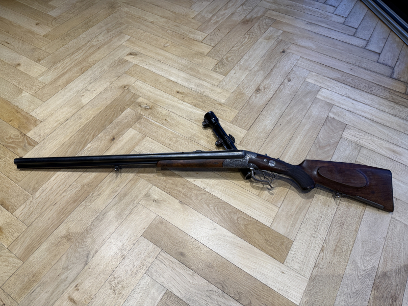 Zum Verkauf steht ein alter Drilling Hergestellt von Robert Wahl, das Büchsenkaliber ist 8x57R360, Schrotläufe in 12/70, Waffe aus Altjäger bestand. Die Waffe verfügt über ein Schaftmagazin mit Platz für 4 Patronen. Bei Bedarf können noch 13 Neu hergestellte Patronen (Originalpreis 10 Patronen 60€) und einige abgeschossene Hülsen erworben werden. Diese Waffe ist ein Sammlerstück aufgrund der Seltenheit des Büchsenkalibers.
