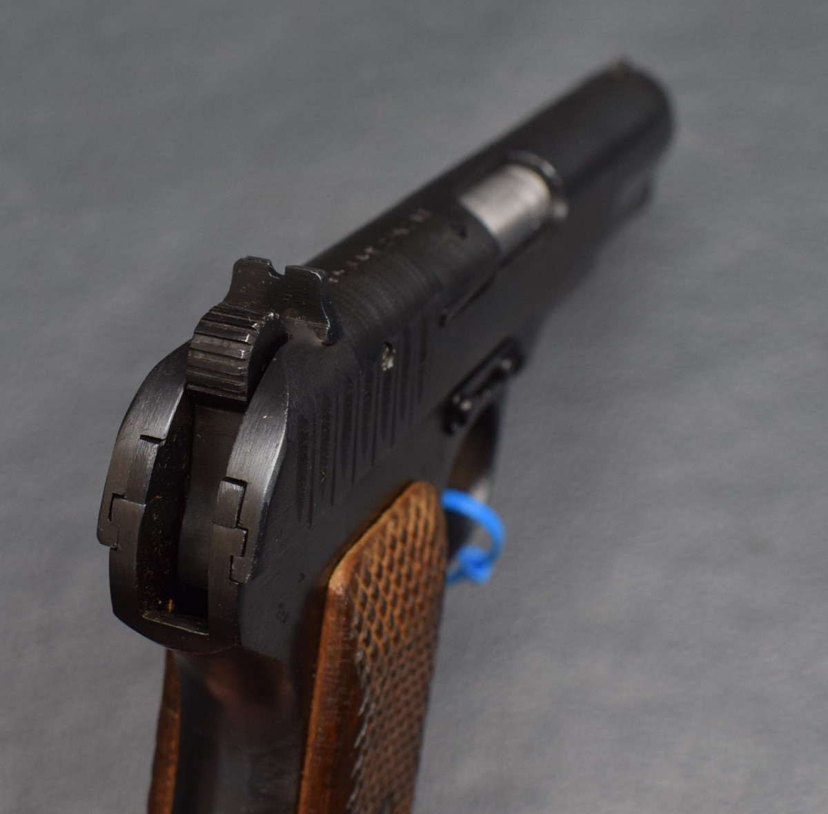 Stahl-Griffstück, Fangriemenöse,Holzgriffschalen. Lauf sehr gut, Brünierung 97% Gebrauchtwaffe, sehr gut.