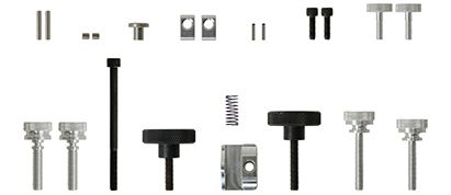 Ersatzteil-Set für Precise Schäfte - rechts. Besteht aus folgenden Ersatzteilen: 2 x Passstift 3x16 (011733), 2 x Precise Gewindestift ISO 4762 - M4x5 (011734), 1 x Klemmteil (011735), 2 x Nutenstein (011740), 2 x Passstift 2x10 (011744), 2 x Zylinderschraube ISO 4762 M5x14 - 12.9 (007810), 2 x Rändelschraube Precise (011613), 2 x Stellschraube (011746), 1 x Zylinderschraube ISO 4762 M5x70-10.9 (010830), 1 x Klemmschraube für Backenklemmung - M5x 20 (011902), 1 x Klemmstück Alu Precise (011727), 1 x Klemmschraube für Kappenklemmung - M5 x 30 (011728), 1 x Stellschraube 1 - für Griff (011729), 1 x Stellschraube 2 - für Griff (011730)