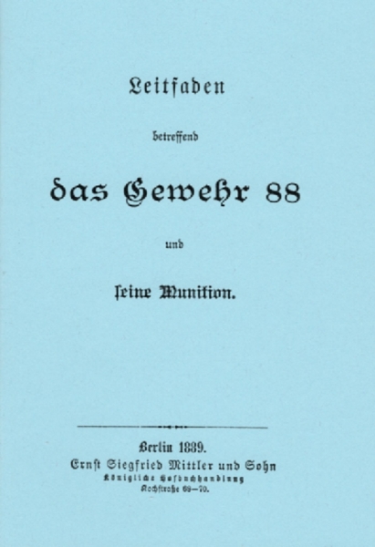 Nachdruck der Dienstvorschrift für das Gewehr 88 von 1889. A6-Format. Auf 36 Seiten werden folgende Themen bewhandelt: