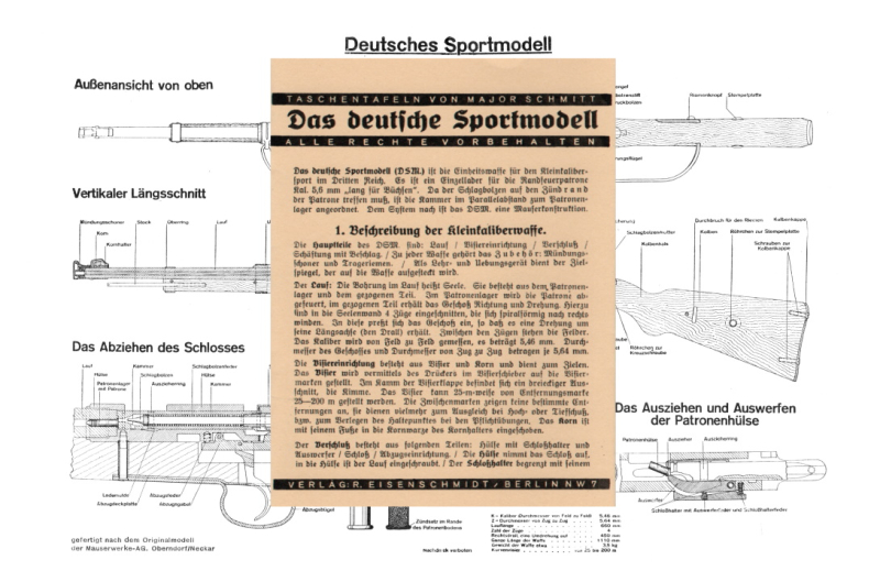 Nachdruck Wehrmacht Taschenkarte Wehrtsport KK-Gewehr „Deutsches Sportmodell“. Format ca. 10,5 x 15 cm. 8 Seiten (2x gefaltet). Mit Schautafel.