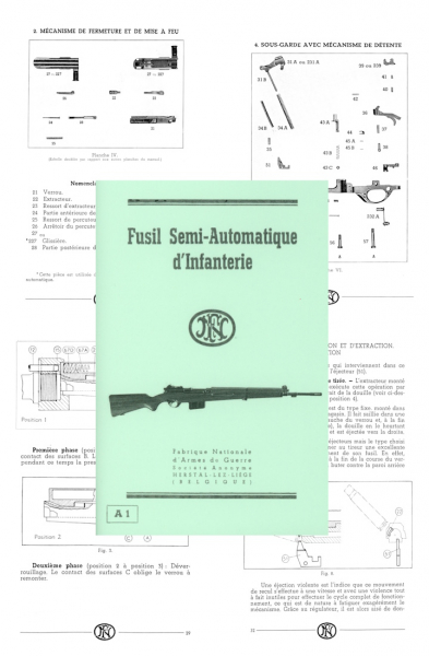 Nachdruck Belgische Bedienungsanleitung zum FN Selbstlade-Gewehr SAFN 49 in französischer Sprache. A5-Format. 57 Seiten. Sehr viele Abbildungen. Eine ausfaltbare A3-Tafel.