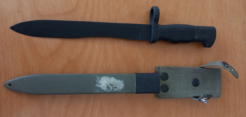 Verkaufe selten gewordenes Bajonett zum spanischen Cetme FR8. Leider mit Rückständen eines Preisschild-Aufklebers auf der Scheide, welche vom Käufer entfernt werden können. Sonst top Zustand. Privatverkauf ohne Garantie.