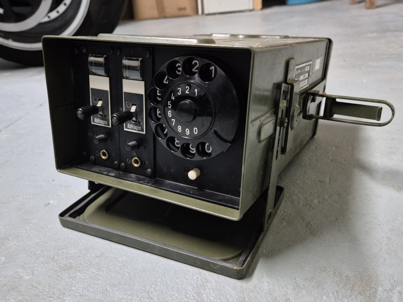 Vermittlung und Amtszusatz original Bundeswehr Feldfernsprecher Feldtelefon Die legendäre Fernsprechvermittlung mit dem Amtszusatz und Wählscheibe, mittlerweile sehr rar! Diese Vermittlungen wurden nicht nur von der Bundeswehr, sondern auch von THW, Feuerwehr, DRK und vom Katastrophenschutz eingesetzt. Durch den Amtszusatz kann man aus der Feldverbindung in das Telefonnetz kommunizieren. Wenn garnichts mehr geht verlässt man sich eben gerne auf uralte unkaputtbare Technik! Die Vermittlung dient zur Herstellung von Sprechverbindungen. Das Feldkabel kann auf der Rückseite direkt über die Klemmschrauben oder über 4mm-Stecker angeschlossen werden. Die Vermittlungen wurden nicht geprüft. Des weiteren können Lagerspuren (Kratzer, kleine Dellen, Abstoßungen oder kleine Rostansätze) möglich sein.
