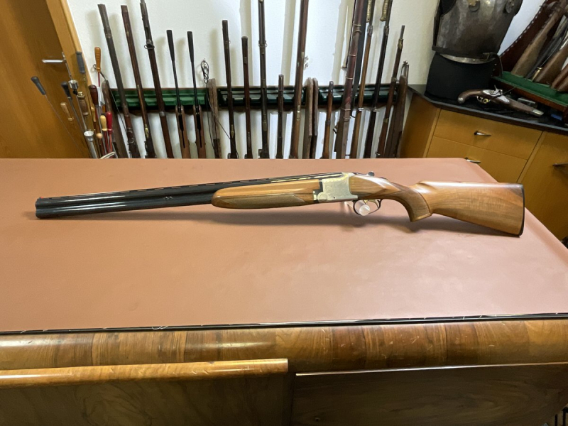 Die Waffe hat einen Doppelabzug, verfügt über Ejektoren und befindet sich in fast neuwertigem Zustand. Sie hat eine Lauflänge von 71 cm, eine Gesamtlänge von 113 cm sowie eine Länge Abzug bis Schaftkappe von 35,5 cm. Der obere Lauf ist mit Vollchoke, der untere Lauf mit Halbchoke ausgestattet.