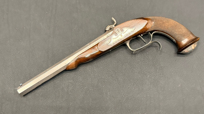 Der Lauf sowie die Metallteile zeigen keine Rostansätze, das Holz ist sauber erhalten. Insgesamt handelt es sich um eine hochwertige Vorderladerpistole für Sammler, Sportschützen oder Liebhaber klassischer Vorderladerwaffen.