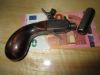 Kleiner Vorderlader . Er lässt sich spannen und abschlagen .Beim spannen kommt der Abzug von alleine raus . Länge zirka 14 cm . Kaliber zirka 9 mm . Lauf zum abschrauben . Schlosskasten floral verarbeitet . Privatverkauf. Keine Garantie oder Rücknahme .