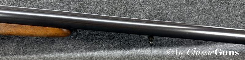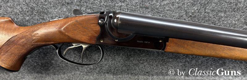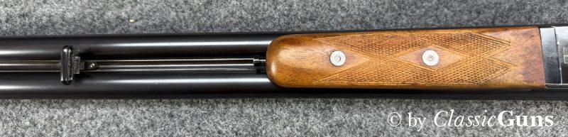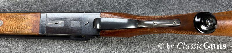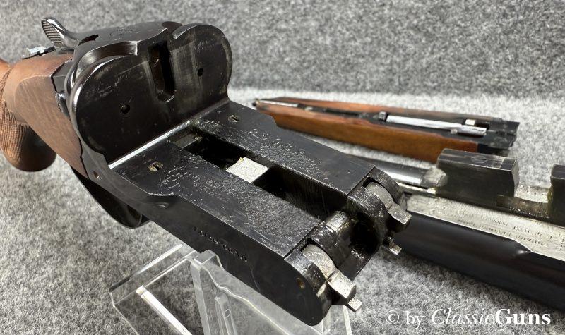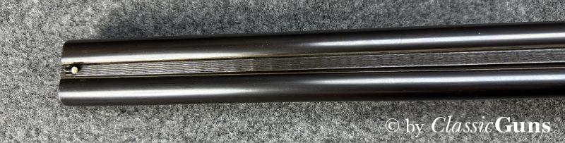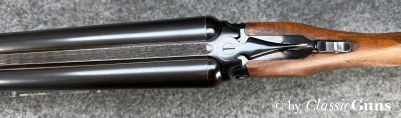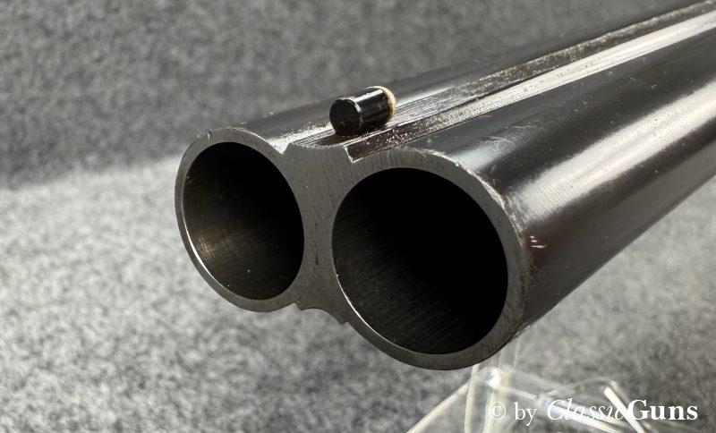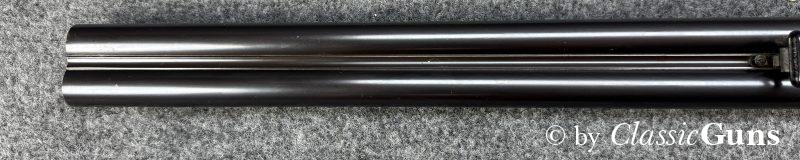 730 mm langes Laufbündel, innen spiegelblank, rechts ¾ und links Vollchoke. Erstklassig erhaltene Brünierung und sehr gut erhaltener Schaft aus schlicht gemasertem Nussbaum. Stahlbasküle, absolut dichter Purdey-Verschluss mit doppelter Laufhakenverriegelung, Doppelabzug, automatische Sicherung, seitliche Signalstifte und zuverlässiger Hülsenauszieher.