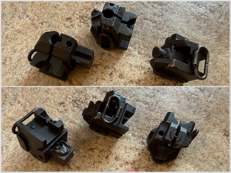 3 Stück Aufnahme für die Schulterstütze von der AK 47 aus DDR Suhl Produktion, Schulterstütze wurde nach der NVA-Era abgetrennt, Teile sind gefettet und nicht beweglich, für Bastler, gebrauchter Zustand, siehe Foto. Freie Ersatzteile, wird immer seltener angeboten.