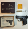 Die Pistole kommt mit Originalverpackung, einem Magazin, Anleitung, Behälter für 10 Patronen (ohne Patronen) und einer Reinigungsbürste.