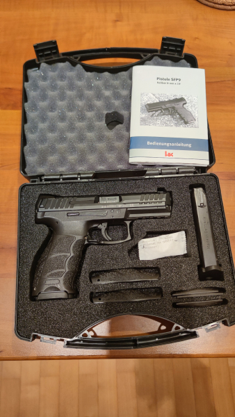 Die SFP9, Kaliber 9x19 wurde 09/2017 erworben und anfangs wenige Male auf dem Stand geschossen.