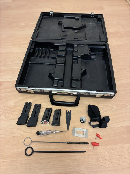 Verkaufe Koffer für Walther GSP, 2x Magazine 22lr, 2x Magazine .32, Hülsenfang, Putzstöcke, Stellschlüssel. Siehe Bilder. Bei Fragen für Details bitte melden. Kein Umtausch, keine Haftung da Privatverkauf.