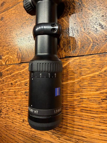 Zielfernrohr Zeiss Victory HT 1,5-6x42, Absehen 60 mit Leuchtpunkt. Original Sako-Montageringe verbleiben am Glas und sind Bestandteil der Auktion.