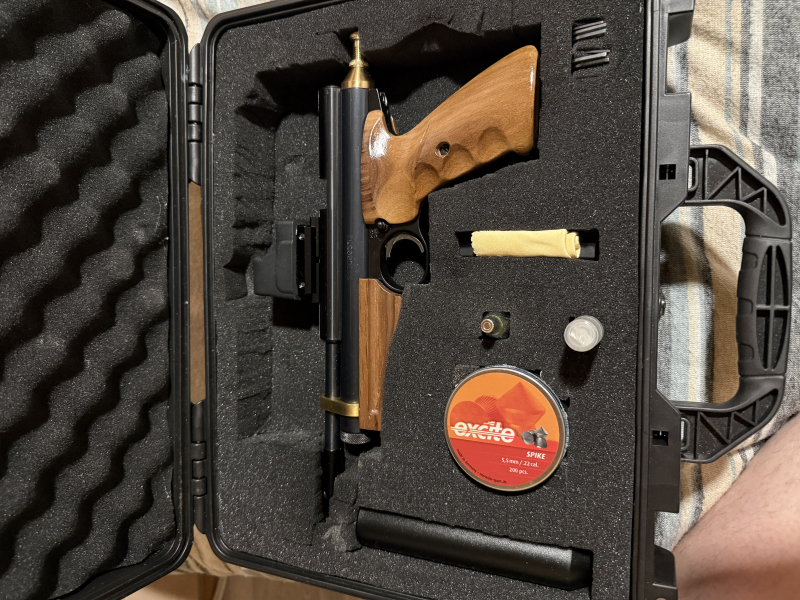 Die Crosman 2240 ist ein Komplett Umbau auf Messing Teile und Echtholz Griffe mit Dot Zieloptik und Schall…. sehen sie die Bilder an mit dem Koffer Mit dieser Waffe ist nur beim einstellen geschossen worden seit dem her gereinigt geölt und eingepackt!
