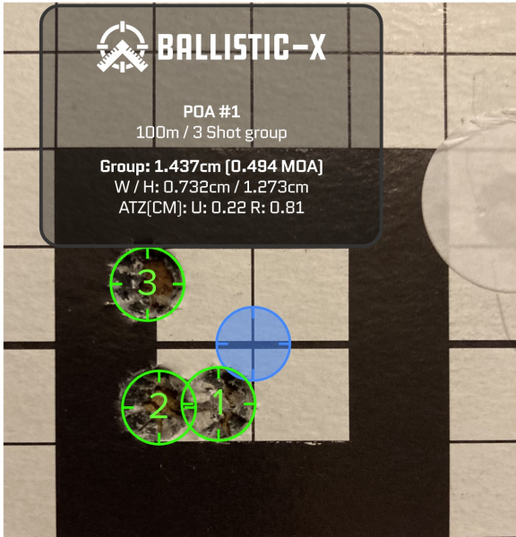 Die Büchse überzeugt durch eine sehr gute Schussleistung (siehe Schussbild). Sub Moa - Streukreis 1,4 cm (100 Meter) Zum Angebot gehört außerdem die abgebildete Munition. Eingeschossen wurde mit bleifreier Sako-Munition.