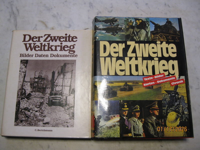 Der Zweite Weltkrieg von C.Bertelsmann. 688 Seiten, 28x22cm. Der Zweite Weltkrieg von Paul Carell. 799 Seiten, 30x23cm. Viele Fotos, Bilder, Zeichnungen und Skizzen. Gebrauchtware, keine Garantie, kein Umtausch.