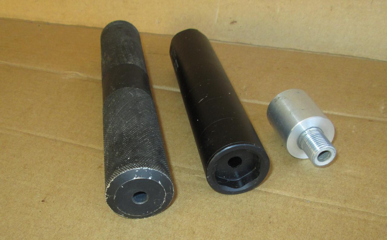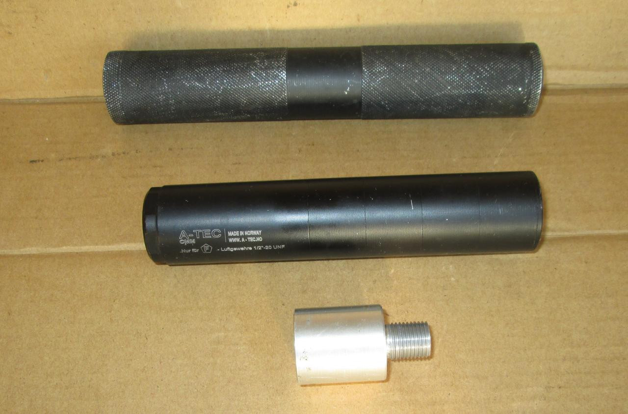 Zwei Schalldämpfer für Luftgewehre mit Laufadapter, A-TEC