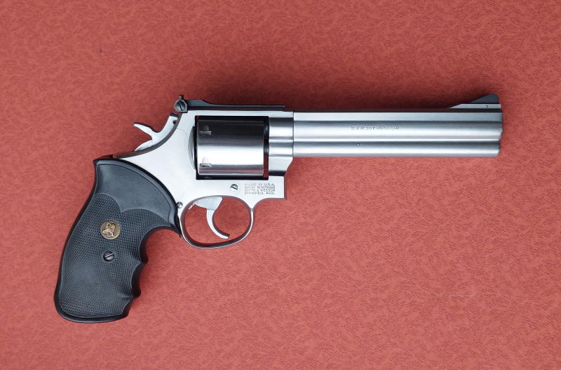 Revolver von "Smith & Wesson", Mod. 686-3 / Kal.: .357Mag / Stainless-Steel-Ausführung / nur wenig oberflächige Spuren / der Lauf ist innen blank, die Züge sind scharf / Lauflänge ist 6" /