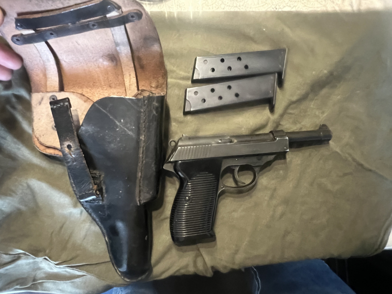 Hier diese Erma EGP 881 Kal.35 PTB 477 mit Holster und 2 Magazinen.