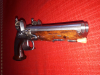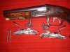 Doppelläufige Steinschlosspistole von "Hazzel.C" A Liege". ELG Stempel auf dem Linken Lauf. Länge:28 cm, Lauflänge: 14,5 cm, Cal. 14,5 mm. Die Läufe sind innen blank und unbeschädigt. Die Zündlöcher sind frei. Beide Schlösser funktionieren gut. Die rechte Batterie funkt nur noch schwach. Die Pistole ist im Originalzustand und rostfrei !