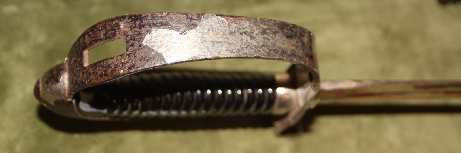 Bayrischer Artillerie-Extrasäbel, Modell 1859 ?? mit Scheide, die Klinge beidseitig mit einer Zierätzung mit dem bayrischen Motto "In Treue fest", die Vernicklung an allen Teilen blasig, rissig und abgesplittert, an diesen Stellen mit feinem, schwarzem Rost, Die Griffülse mit der schwarzen Ummantelung intakt und schön. Durch vollständige Entfernung der noch vorhandenen Vernicklung und des Rosts noch etwas verbesserungsfähig, mit der originalen schwarzen Lackierung, diese rau, einige kleine unauffälligen Dellen. Bis auf die beschriebenen Mängel keine weiteren Mängel erkennbar. Mit wenig Aufwand gut verbesserungsfähig. Fotos sind Bestandteil der Beschreibung. Alle Angaben nach bestem Wissen und Gewissen. Dies ist ein Privatverkauf. Gemäß EU-Recht unter Ausschluss von Gewährleistung und jeglicher Sachmängelhaftung. Der Käufer ist selbst verantwortlich für die Einhaltung der gesetzlichen Vorschriften / des Waffenrechtes seines Landes. Fragen bitte rechtzeitig vor dem Auktionsende stellen. Ich beobachte meine Auktionen und mein Mail-Postfach nicht permanent. Daher bei kurz vor Auktionsende gestellten Fragen keine Garantie auf eine rechtzeitige Antwort. Verkauf nur gegen Vorkasse. Banküberweisung oder PayPal (Bei Zahlung über PayPal erhöht sich der Kaufpreis um die von PayPal einbehaltene Gebühr, bei Zahlung mit der Option Geld an Freunde senden entfallen diese zusätzlichen Kosten) Bei Selbstabholung ist Barzahlung möglich. Die Versandkostenpauschale deckt außer den reinen Portokosten auch einen Anteil an Verpackungs und Fahrtkosten zum nächstgelegenen Paketshop. Versandkosten sind nicht verhandelbar. Die Versandkosten sind Kosten für den Inlandsversand. Versandkosten ins Ausland gemäß den aktuellen Preislisten der beauftragten Paketdienste sind höher.