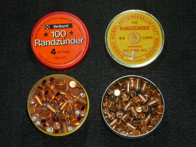 2 Dosen 4 mm lang, mit Kugel, teilweise schon gesetzt, Patronen nicht gezählt aber gut voll