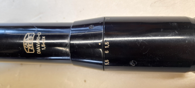 Zielfernrohr Zeiss Diavari D 1,5-6x36 mit 70 Grad Schiene an Mittelrohr und Objektiv, Absehen Diavari wie Absehen 1 nur mit verjüngenden Balken