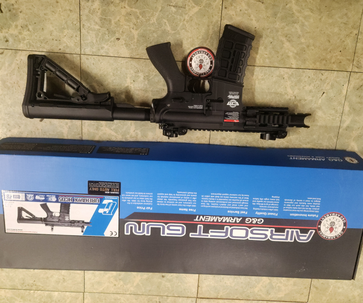 Aus Sammlungsauflösung, verkaufe ich hier eine G&G Firehawk High Cycle HC-05 < 0,5 Joule, 6mmBB AEG Softair Gewehr . Unbespielt Neu.