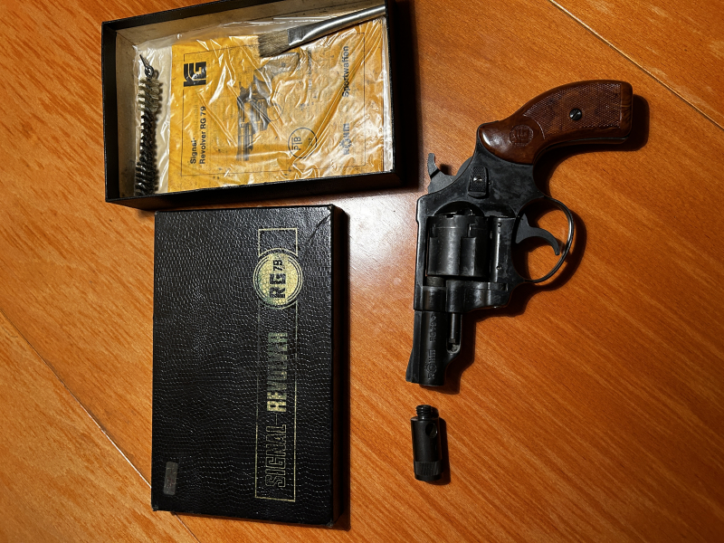 Schreckschuss-Revolver Röhm RG 79, stark gebraucht aber voll funktionsfähig.