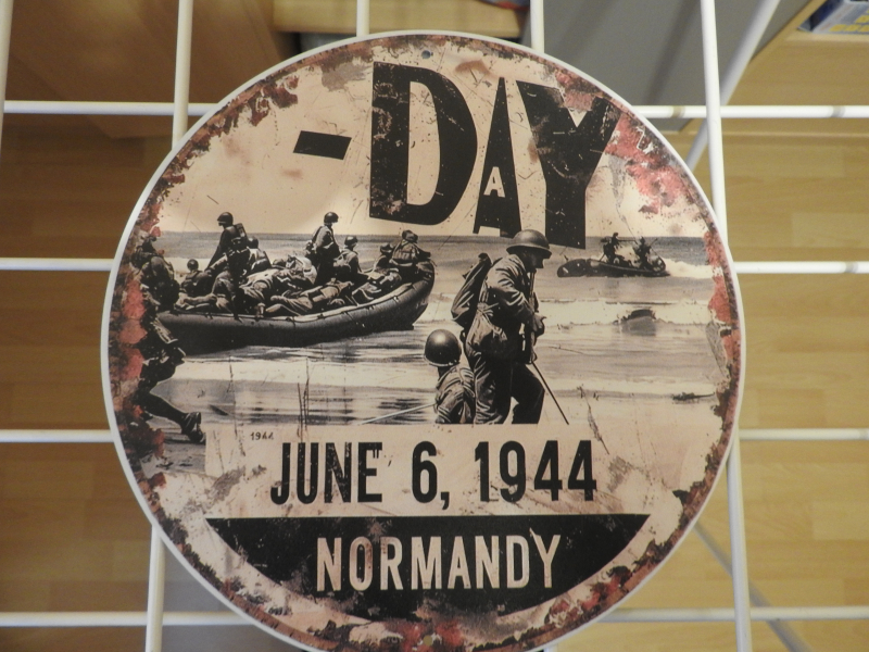 Biete Blech-Erinnerungsschild an den D-Day, 6.Juni 1944, Normandy. Das Schild ist rund mit einem Durchmesser von 20 cm und hat rechts und links am Rand ein Loch zu Befestigung. Alter und Herkunft sind mir nicht bekannt. Es ist wahrscheinlich im Siebdruckverfahren hergestellt.