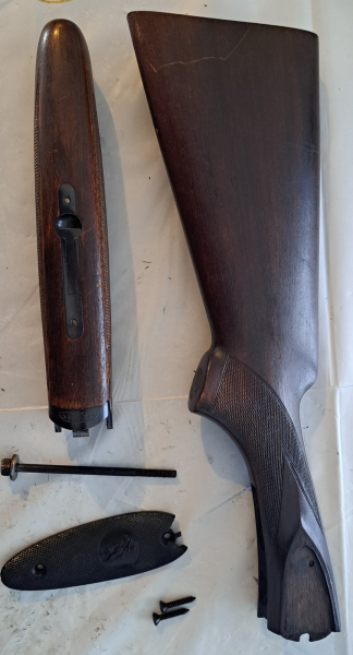 Zum Verkauf kommt der Hinterschaft sowie der vollständiger Vorderschaft meiner Kettner Turin Ejektor-Bockflinte Kal. 12/70, wie auf den Fotos zu sehen ist. Ersatzteile für die Kettner Turin gelten als nicht mehr beschaffbar. Dazu die defekte Schaftkappe (oben ist ein Stück abgebrochen), die beiden Schrauben dazu sowie die lange Schraube, die den Hinterschaft in der Basküle hält. Hinterschaft und Vorderschaft im Top-Zustand, der Hinterschaft hat hinten links einen oberflächenkratzer (ohne ins Holz zu gehen) (siehe Foto). Schaftöl dürfte das Problem behen. über