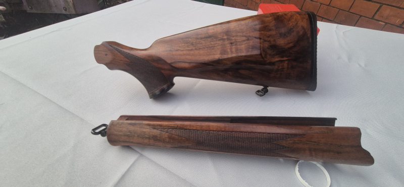 Sie bieten auf eine originale neuwertige Schaftgarnitur von Blaser. Sie paßt an das normale Blasersystem für Standartläufe. Der Hinterschaft ist nicht gekürzt. Der Hinterschaft ist für Rechtswaffen ausgelegt. Da privat, keine Garantie oder Rücknahme.