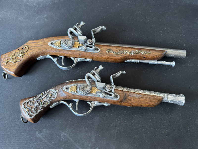 zum Verkauf stehen 2 Deko Steinschlosswaffen mit Wandhalter.
