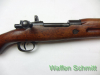 Sie bieten auf ein spanisches Ordonanzgewehr (Repetierbüchse) La Coruna FR8 im KLaliber .308Win. 45cm Lauflänge mit Mündungsbremse und verstellbarer Diopter-Visierung (Lauf von innen ohne Mängel), 98er System mit Flügelsicherung, 5-Schuß Magazin von oben zu laden, Druckpunktabzug, Nußbaumholzschaft mit Handschutz und Stahlschaftkappe, Riemenbügel, Schaftlänge 33cm, Gesamtlänge 99cm. Original-Zustand!!!